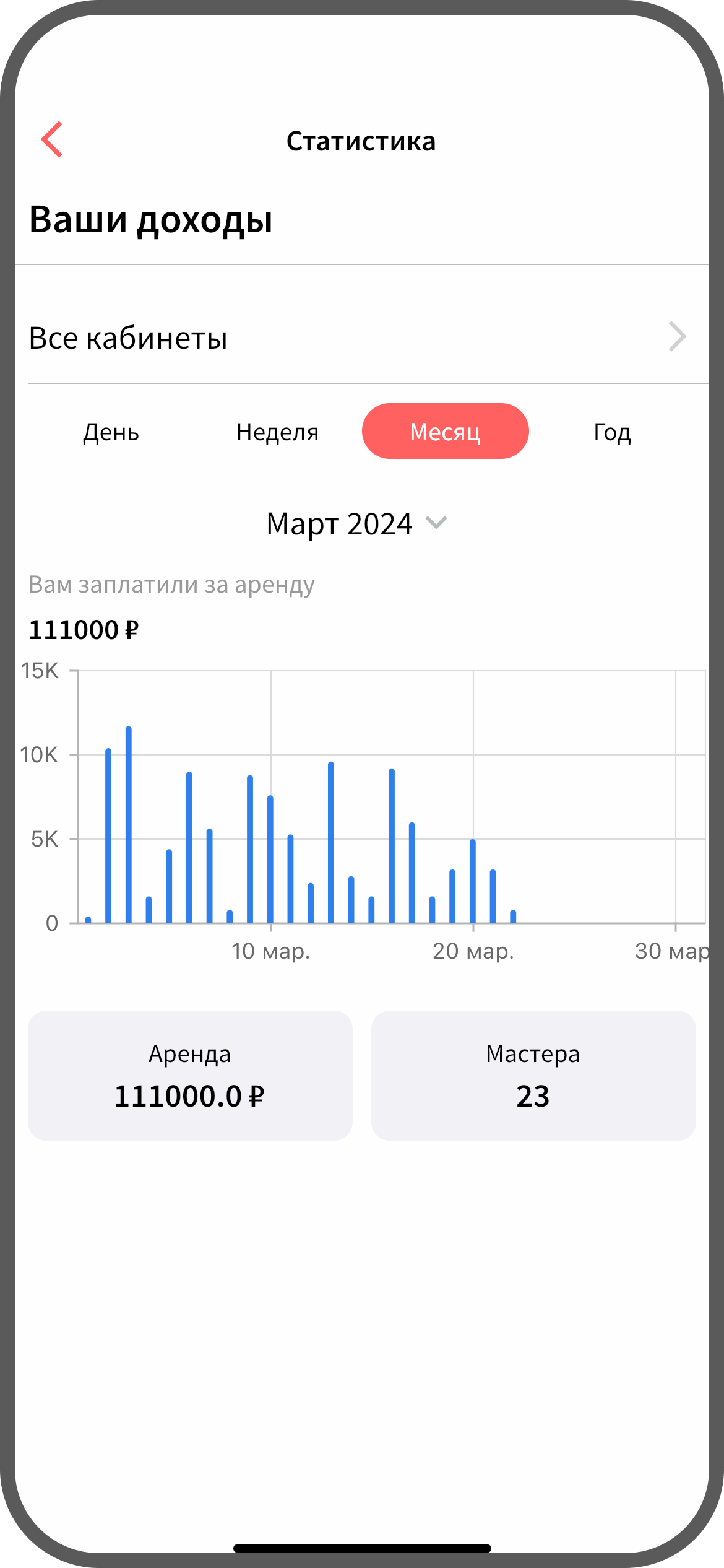 В этом разделе вы можете посмотреть статистику по доходам в любом из выбранных интервалов