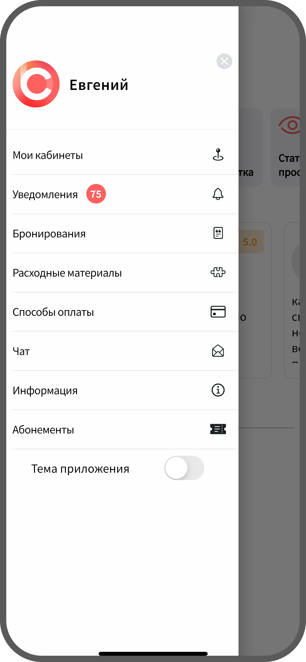 Выбрать график работы кабинета / места. Добавление расходных материалов и доступ в кабинет если на двери кодовый замок.